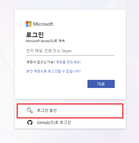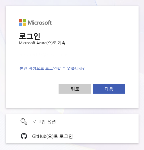 Azure 로그인 시 KT 디렉터리로 전환되지 않는 경우, [조직에 로그인]을 통해 로그인 해주시기 바랍니다.
