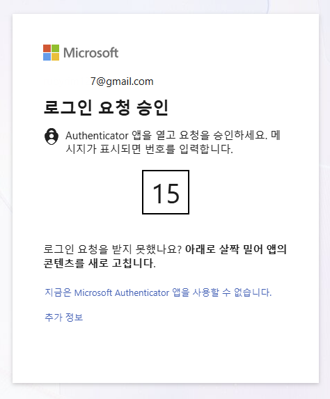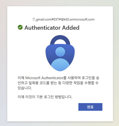 인증 번호를 Authenticator 앱에 입력하여 인증을 완료해주세요.